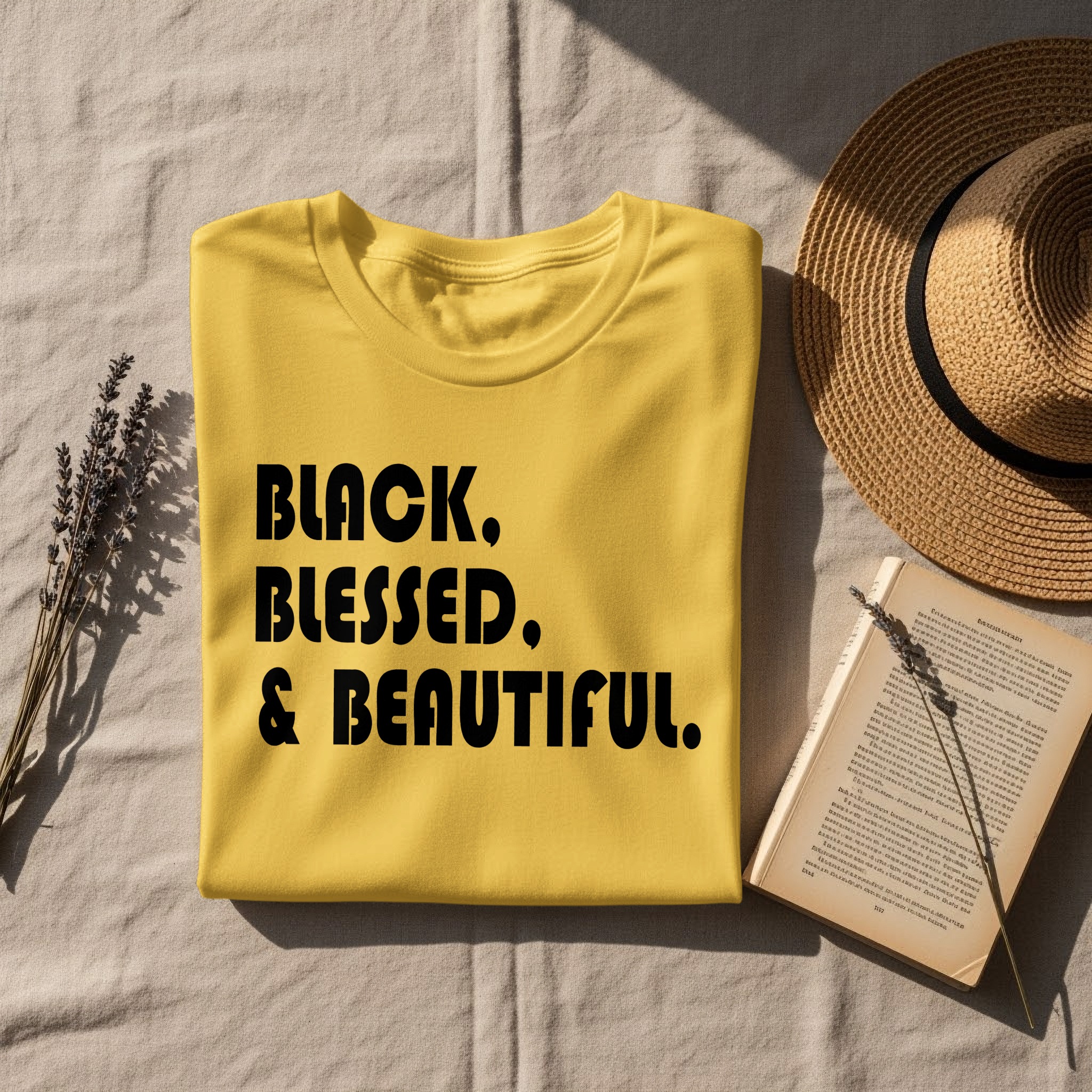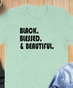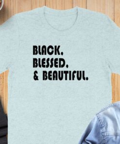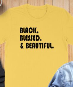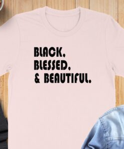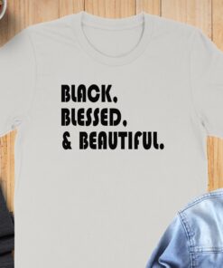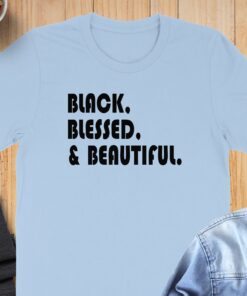 Make a bold statement with the Black Blessed and Beautiful T-Shirt. This eye-catching tee features a powerful message that celebrates confidence and self-love.
