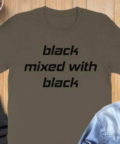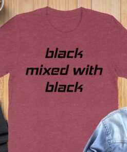 This Black Mixed With Black tee is a bold statement piece for any wardrobe. Featuring striking text design this cool T-Shirt will set you apart from the crowd.