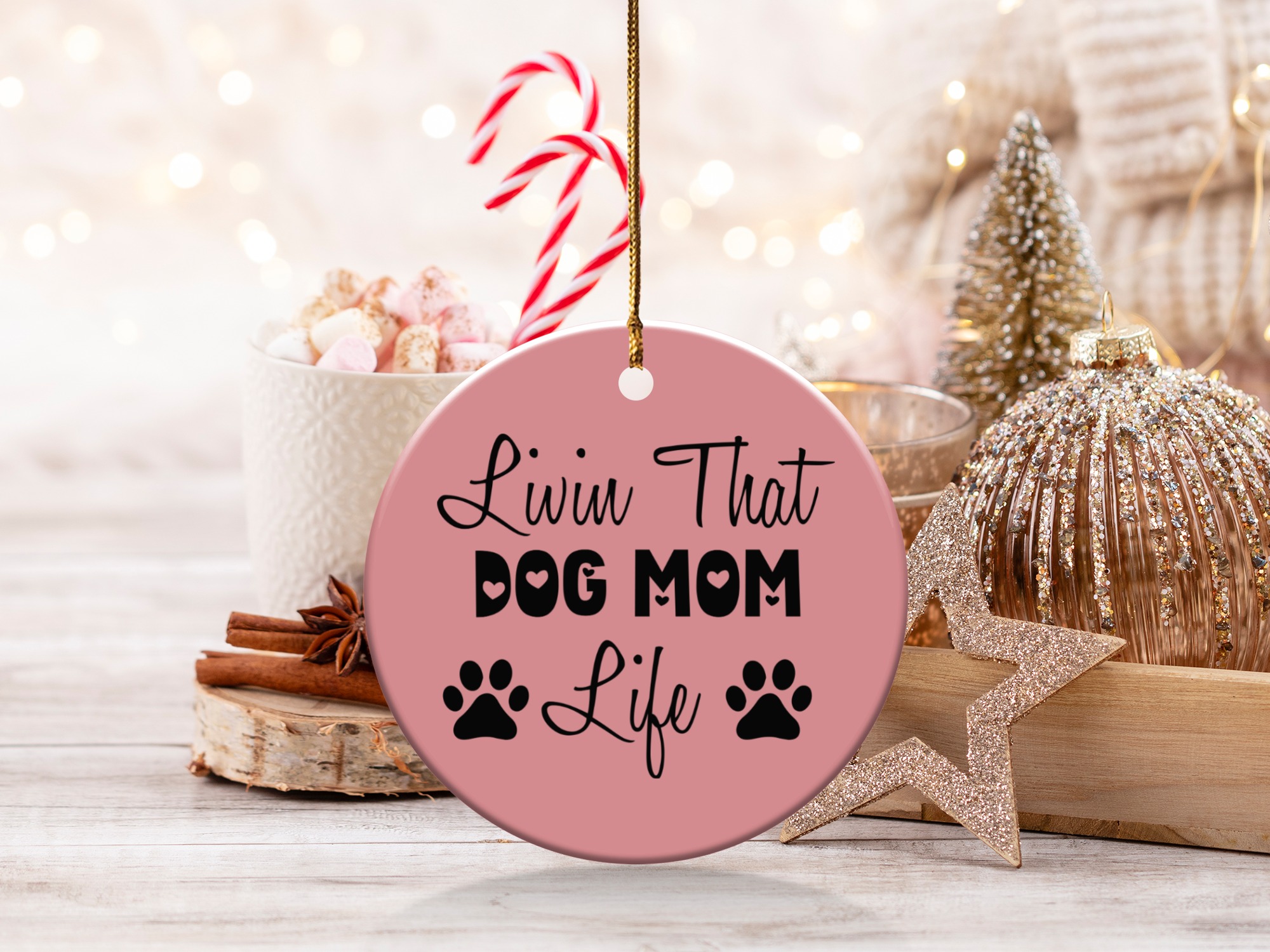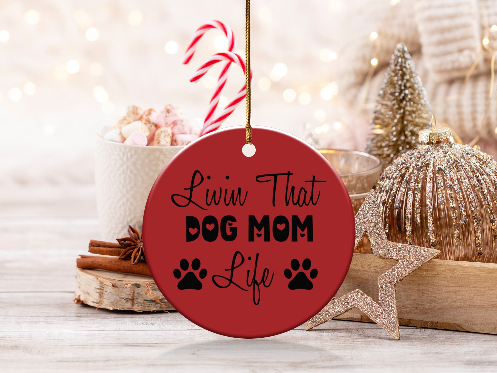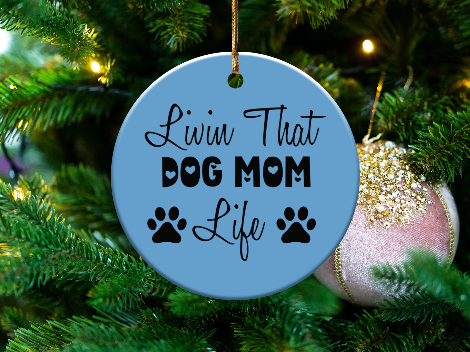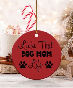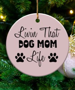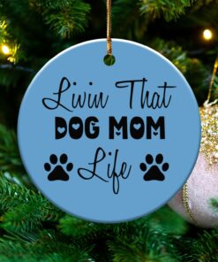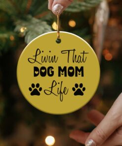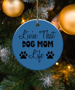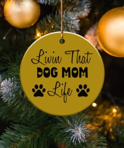 Express your love for your furry friend with this “Livin That Dog Mom Life” ornament. This design shows your commitment to your pet. Perfect for any dog mom’s home decor.
