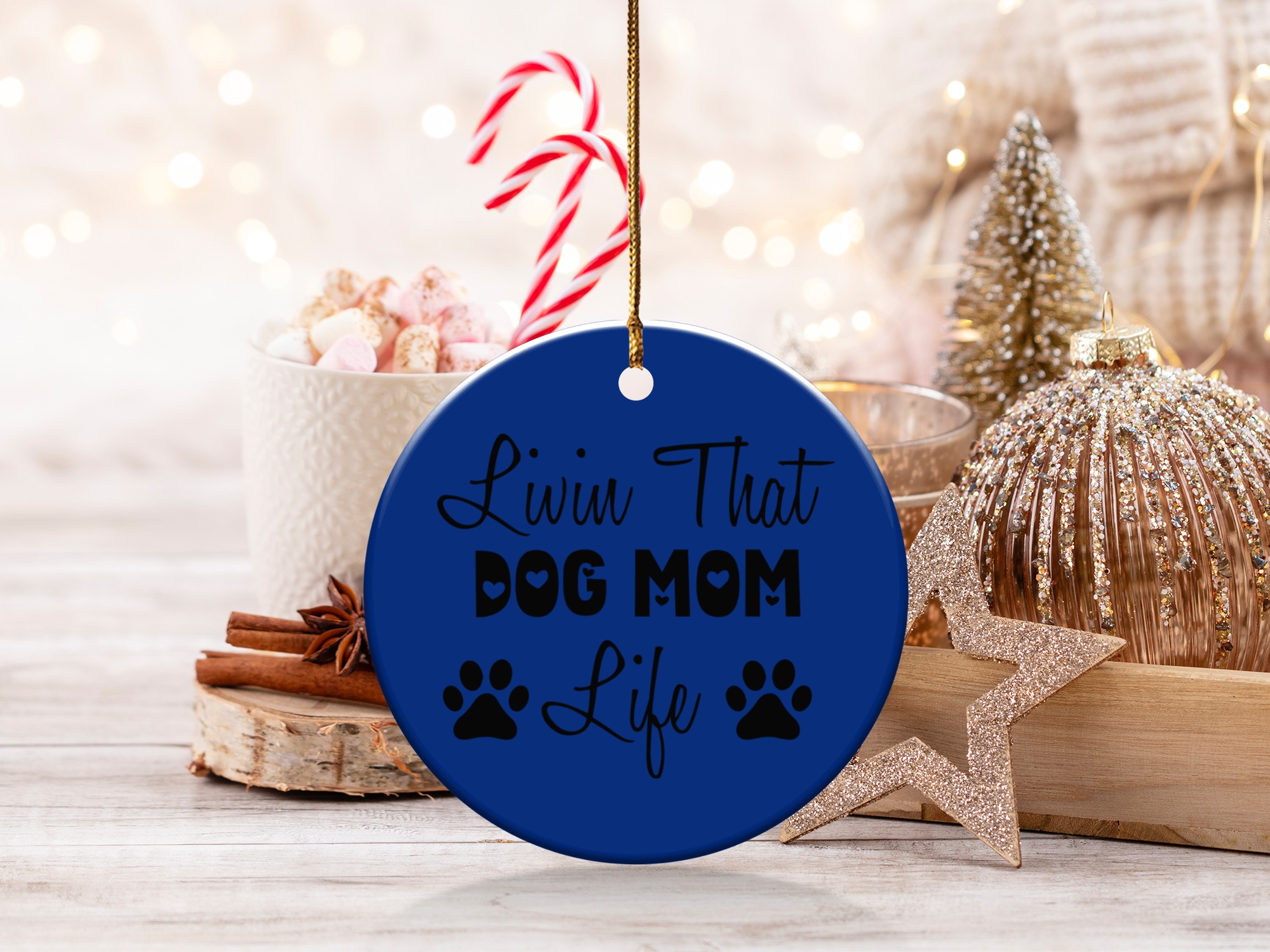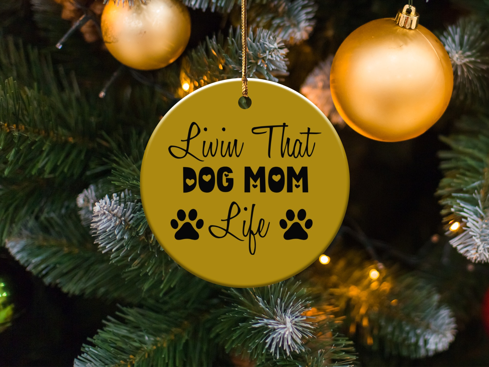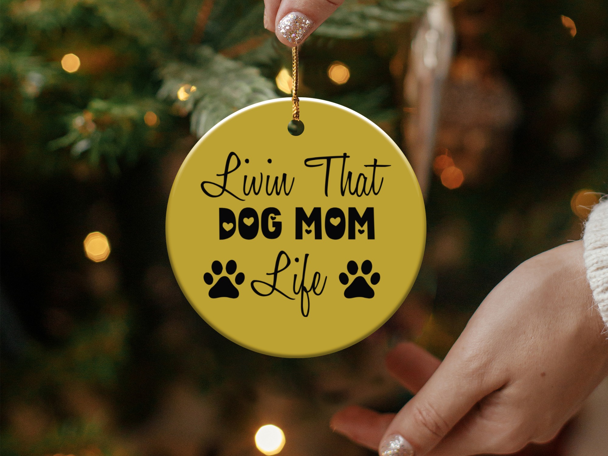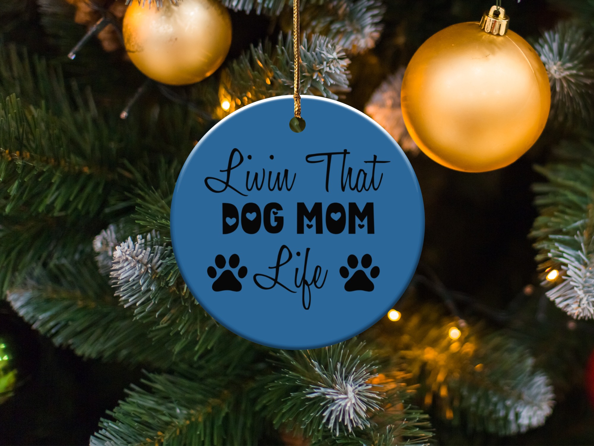 Express your love for your furry friend with this “Livin That Dog Mom Life” ornament. This design shows your commitment to your pet. Perfect for any dog mom’s home decor.