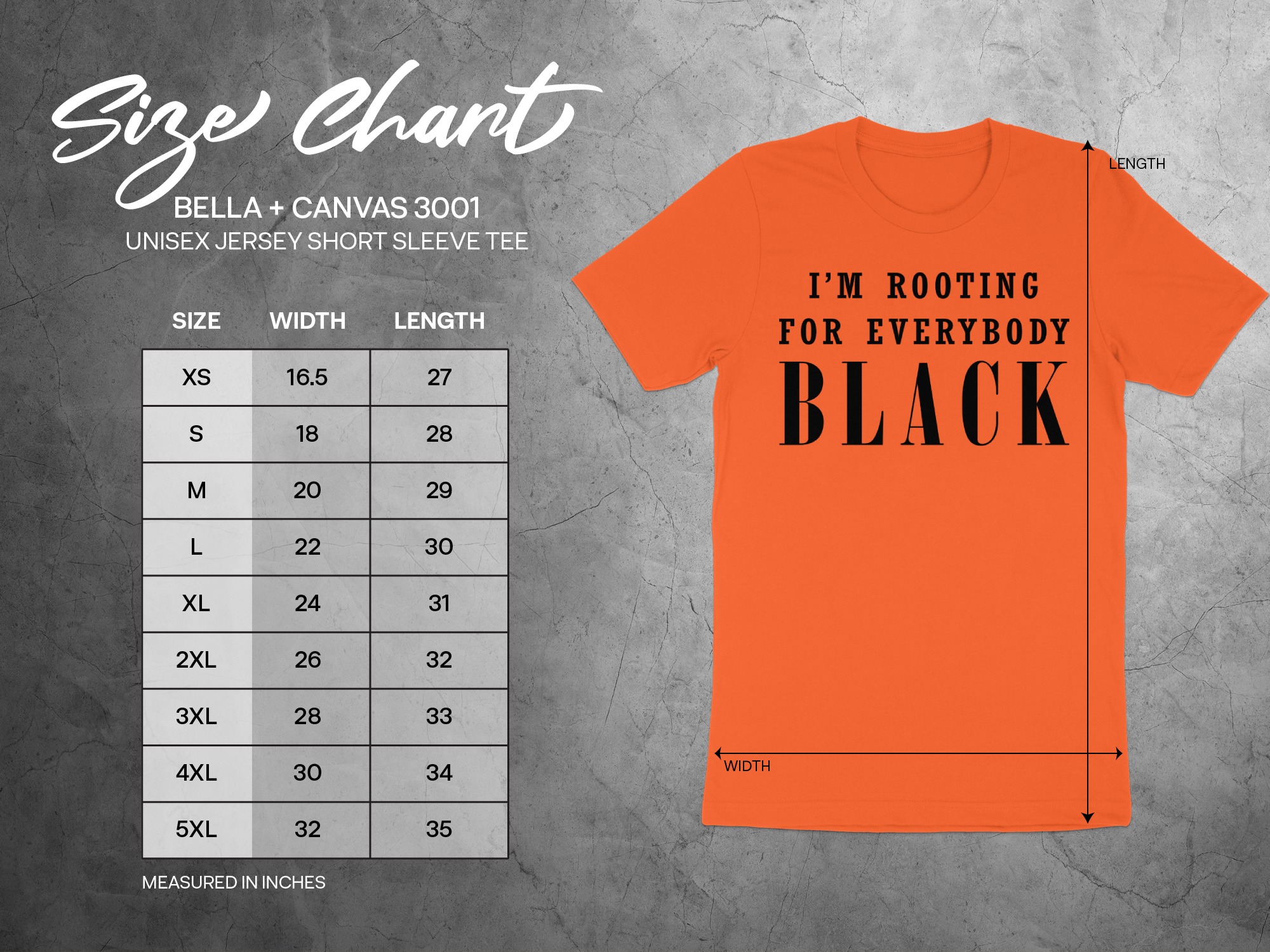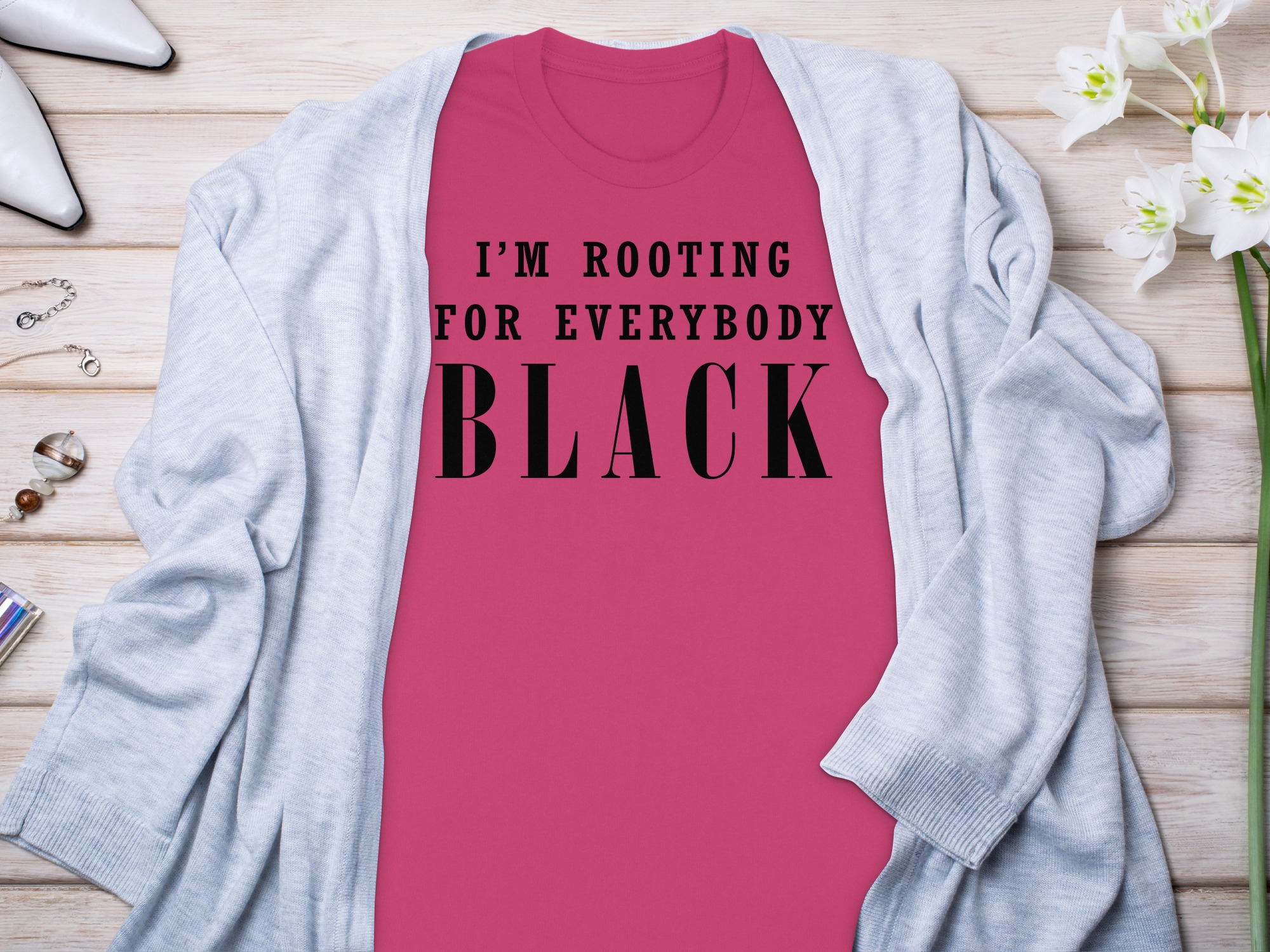 Show your support for diversity with this stylish graphic tee featuring a bold “I’m Rooting For Everybody Black” design. Perfect for making a statement.